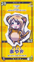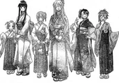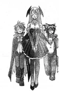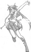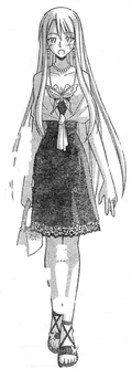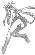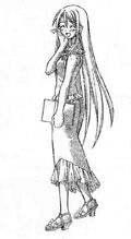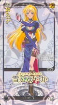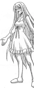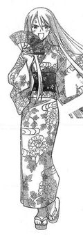 Prior to gaining an ability from the mass Pactio, Ayaka was infected by the second wave of Dark Seeds alongside Makie, Mana and Natsumi, where she is stopped by a combination of Negi and his three newer contracts: the twins Fuka & Fumika and Kaede.[26] Although Ayaka gains Pactio abilities during the mass contract, she is one of the few students to have all three forms invoked, all of which during the second half of the series. Negi ends up invoking her Armor form at one point to save Asuna from a mass of dark spores, turning her into a whip-wielding female warrior.[28] During the "Suka incident", she turns into a cheetah, primarily seen as the mother of a "family" including "child" Makie and "father" Motsu.[29] Finally, during the "Final Pactio invocation", she reveals her Cosplay form: a perfumer who can trace things by their scents, essential in use after Negi receives a black rose with the scent of his father Nagi Springfield still on it.[30]