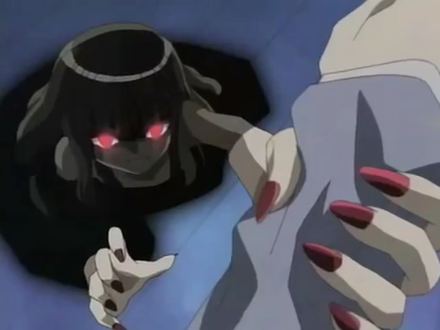 After Negi used the dark magic spell scroll Rakan gave him, she appeared as a spirit copy created by Negi's memories of her, which he then fought against inside his own head. During this endless battle Evangeline does not hold anything back and Negi is killed again and again, the battle ends when Negi finally manages to absorb her dark magic into himself.