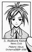 Student Number 3: Kazumi Asakura (朝倉 和美, Asakura Kazumi) is the resident class reporter with a camera always on hand. She likes to get the inside scoop on everything that goes on, and is the paparazzi of 2-A class. Kazumi won't stop at anything until she gets her scoop.