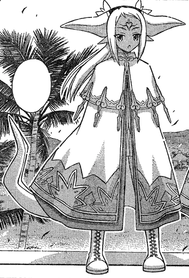 She has a pair of horns in the sides of her head that can be used to poke people with (as Rakan and Chamo get horned because they notice she doesn't wear panties). According to Akamatsu, she doesn't wear panties because her tail is too big. She is often expressionless, even when put into otherwise embarrassing situations.